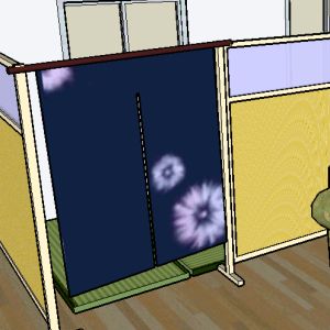 縦じまのテクスチャを張ったら半透明であらビックリしたので、畳の時同様サクサクと画像作って張ってみた…ら。ナナメに置いてあったからか、テクスチャまで斜めった。むむぅ